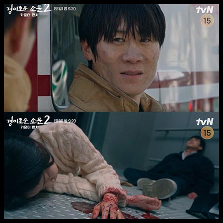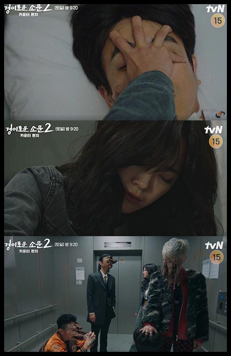 소문과 필광이 드디어 만나게 되고 필광이 소문을 보며 사악한 미소를 지으며 경이로운 소문 시즌2 2회가 끝이 납니다.