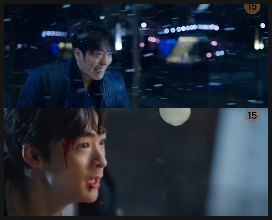 류선재를 차로 치려는 범인 김영수를 막아선 김태성.